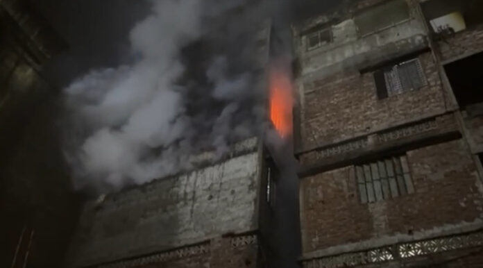 সোমবার (১৬ ফেব্রুয়ারি) রাত পৌনে ১১টার দিকে সাত তলা ভবনটির চতুর্থ তলায় আগুন লাগে। খবর পেয়ে ফায়ার সার্ভিসের ছয়টি ইউনিট ঘটনাস্থলে গিয়ে আগুন নিয়ন্ত্রণে আনে।